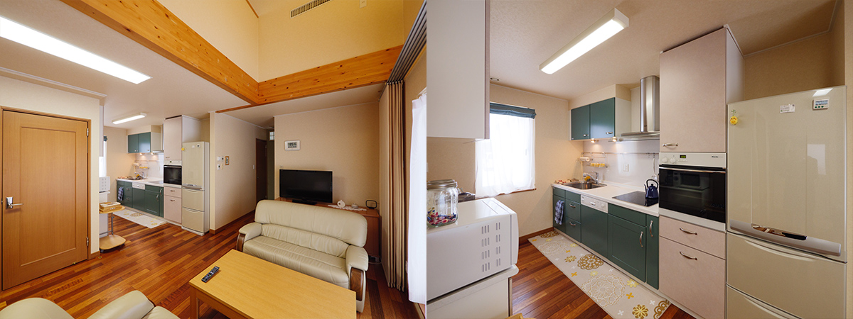 建て替えや大規模リフォームのお客さんは、短期の仮住まいが必要になりますが、アパートは短期では借りにくいので困る方も少なくありません。そこでモデルハウスを提供。宿泊に利用していただいております。