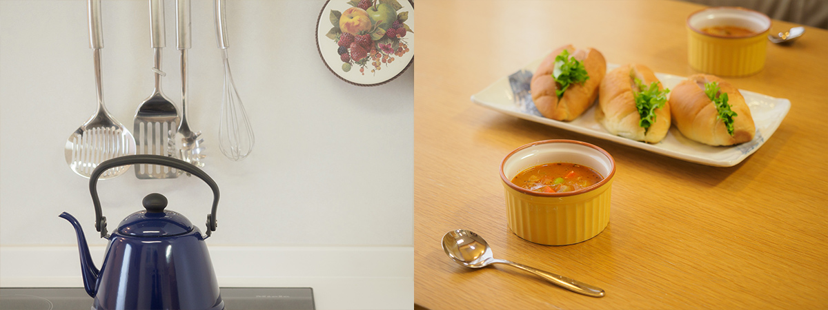 実際にキッチンを使用して料理もできます。モデルハウスに宿泊して、家族で晩ご飯を作って食べる・・・その経験が家づくりの参考になると思います。