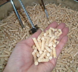 - ペレットとは「小弾丸」「小粒」という意味です。ここでの木質ペレットとは伐採木や製材工場からでる端材やおが屑など今まで捨てられていたものを再利用するものです。木を粉にし、高温の熱を加えて固めます。熱を加える事によって木から出てくるリグニンという物質により固まるので自然のままの素材です。